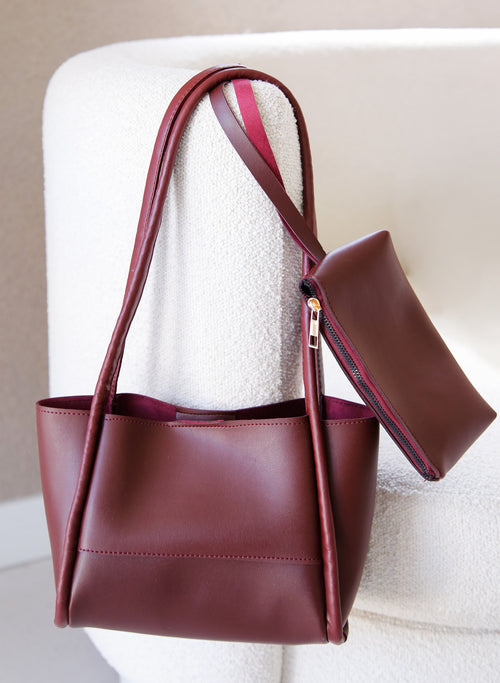 Bordo Makyaj Çantalı El ve Omuz Çantası Elyon Amber