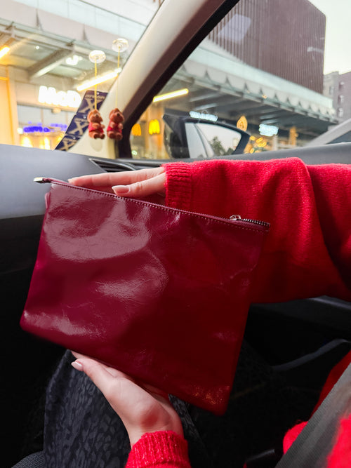 Bordo Parlak Deri Görünümlü Kadın Cüzdan