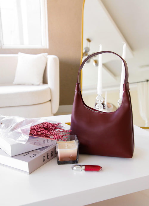 Süet Mürdüm Hobo Postacı Formu Salaş Omuz Çantası Crimson Suede -